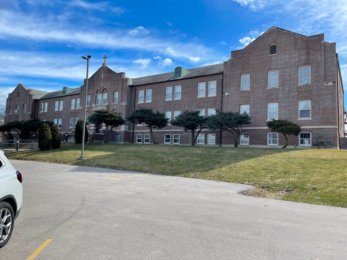 Velika slovenska stavka, cerkev in samostan, na (tu) samo maled delu obsežnega zemljišča ameriških Slovencev v Lemontu/Chicago. Njihova Slomškova šola (za otroke) je dobila donacijo nekaj številk otroške glasbene revije "Glasbeni vrtiljak" založbe ASTRUM..