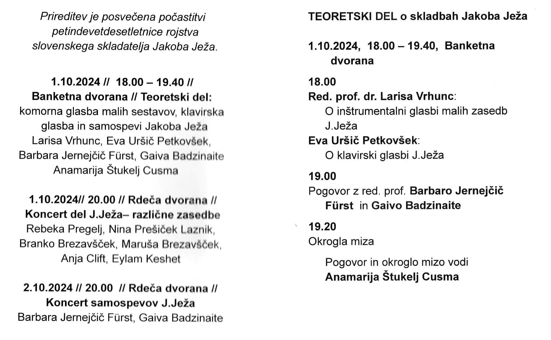 Prireditev je posvečena počastitvi petindevetdesetletnice rojstva slovenskega skladatelja Jakoba Ježa